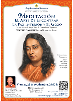 Os recordamos que los monjes de SRF realizarán una visita a Barcelona del 22 al 24 de septiembre para difundir las enseñanzas de Paramahansa Yogananda, enseñar las técnicas de meditación y celebrar una ceremonia de iniciación en Kriya Yoga.