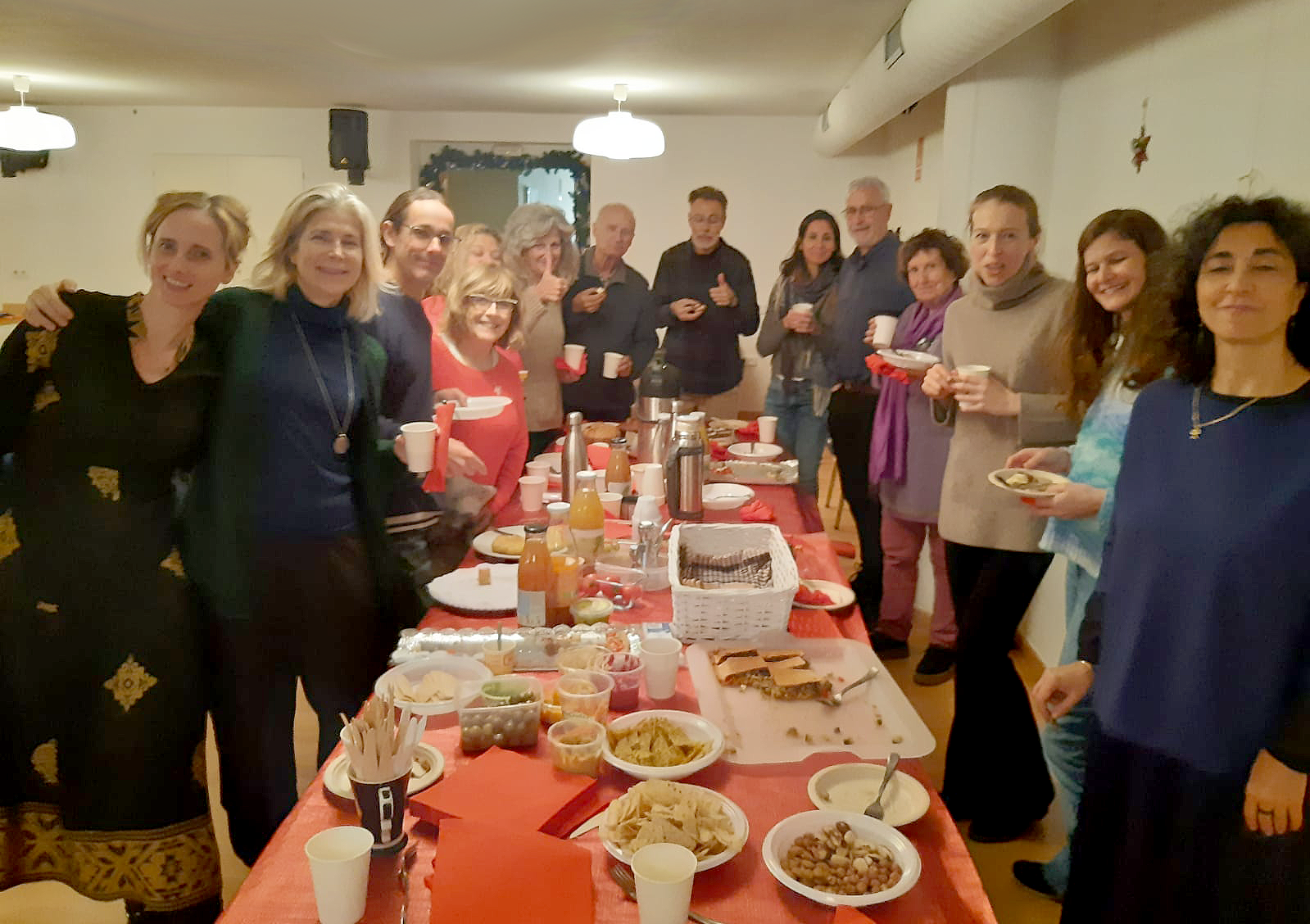 Con las aportaciones culinarias de los participantes creamos un excelente y variado bufet libre con una sabrosa comida vegetariana. Fue una comida muy agradable y entretenida. Organizamos un juego de preguntas sobre las enseñanzas del Maestro, nos obsequiamos con el intercambio del “amigo invisible“ y no faltaron las canciones de Navidad.